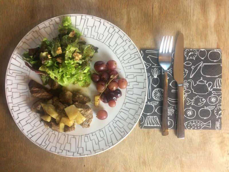 Ragout „Madeira“ mit Backtrauben & lauwarmem Salat