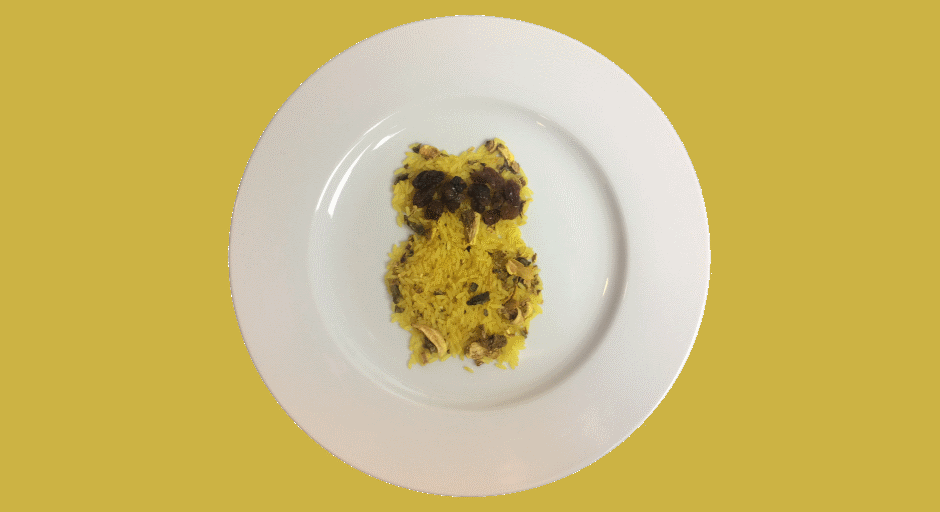 Das Risotto habe ich, wie auf der Packung empfohlen, bei der Zubereitung noch um Rosinen, geröstete Pinienkerne, einen Stich Butter und Parmesan ergänzt und – damit es ein bisschen kreativer ist – dem Kochwasser einen guten Schuss Weißwein beigegeben.