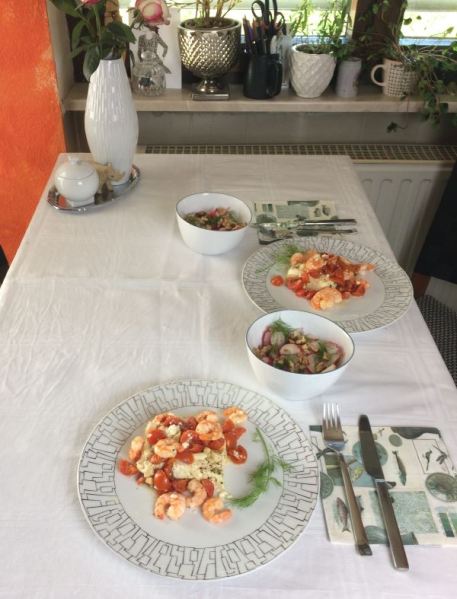 Garnelen-Saganaki mit Fenchel-Radieschen-Salat